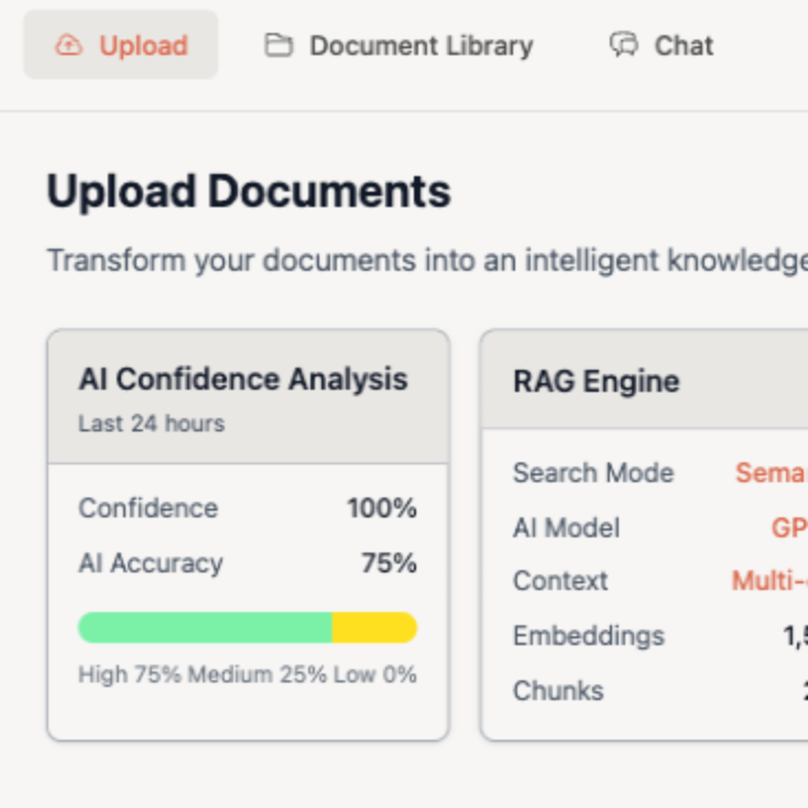 Production RAG system providing instant, context-aware access to enterprise documentation with semantic search and source attribution.